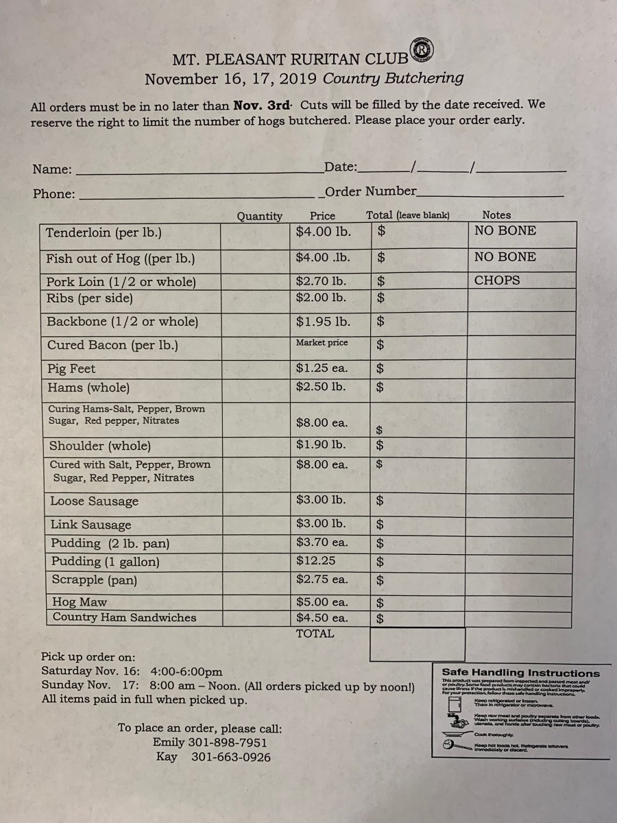 Official Website of the Mt. Pleasant Ruritan Club, Frederick County, MD